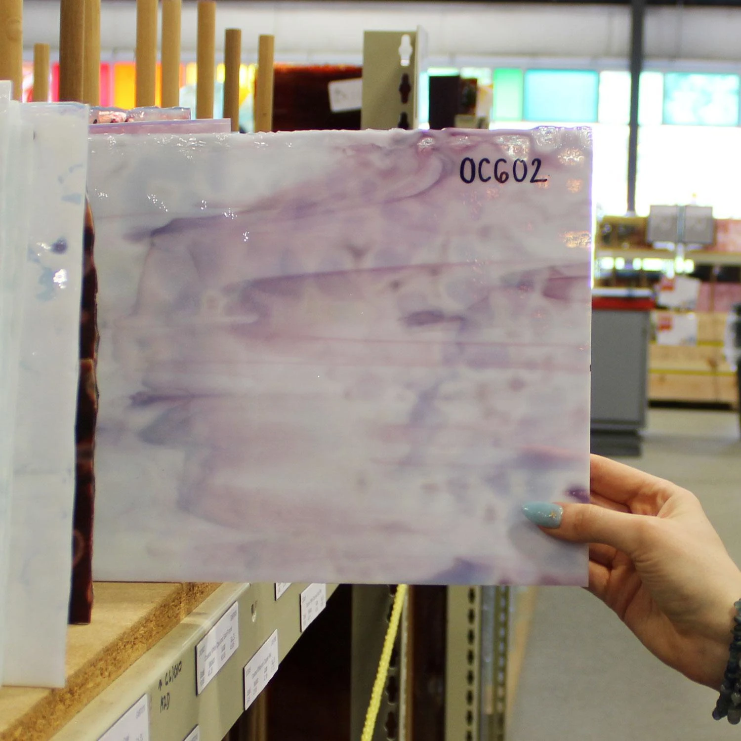 Create with beautifully mottled Oceana glass. Each sheet contains varying degrees of density, creating a three-dimensional quality which is uniquely Oceana. The colors are crisp and vibrant, making it a favorite of glass artists. Perfect for Tiffany lamps and reproductions.