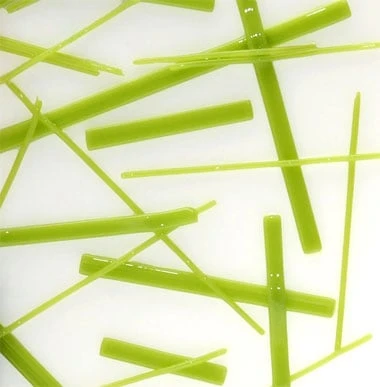 Oceanside stringer is round in cross-section and measures about 1.5 mm thick and 16″ long. Stringer is thin enough to bend in a candle flame and can be used in many ways, from bead work to picking up on blown forms. Packed in 5 ounce tubes; 96 COE.
