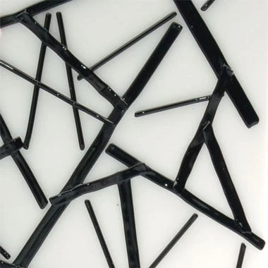 Oceanside Noodles resemble their namesake fettuccine noodles, and measure about 1.5 mm thick, 5 mm wide and 16″ in length. Use singly on sheets or blown forms, or fuse together for cutting into Murrini for fusing or blowing components. Noodles are also convenient for bead making, providing thin, uniform bands of color. 96 COE.