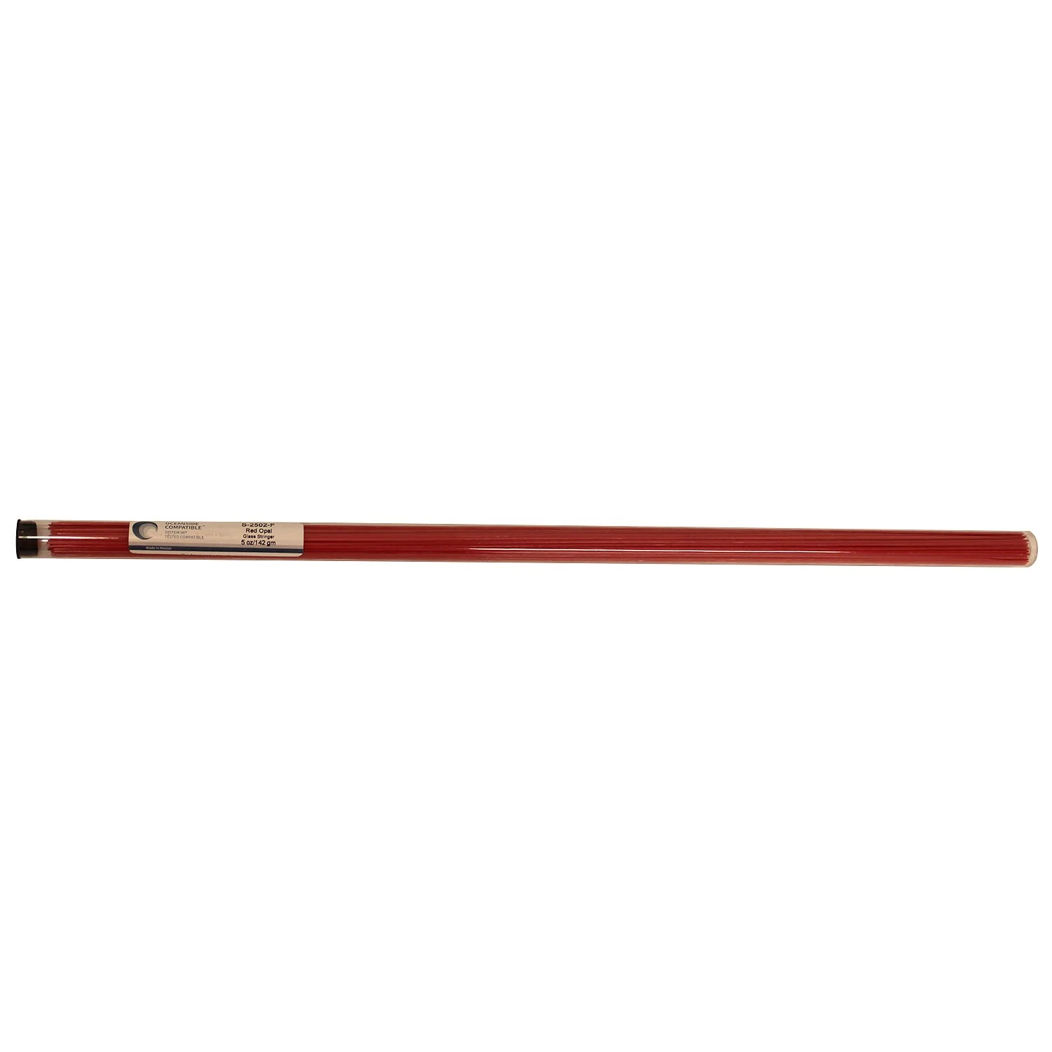 Oceanside stringer is round in cross-section and measures about 1.5 mm thick and 16″ long. Stringer is thin enough to bend in a candle flame and can be used in many ways, from bead work to picking up on blown forms. Packed in 5 ounce tubes; 96 COE.