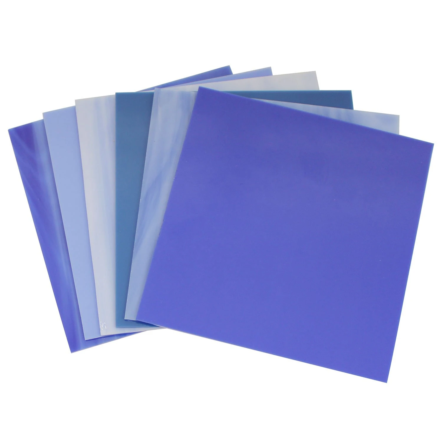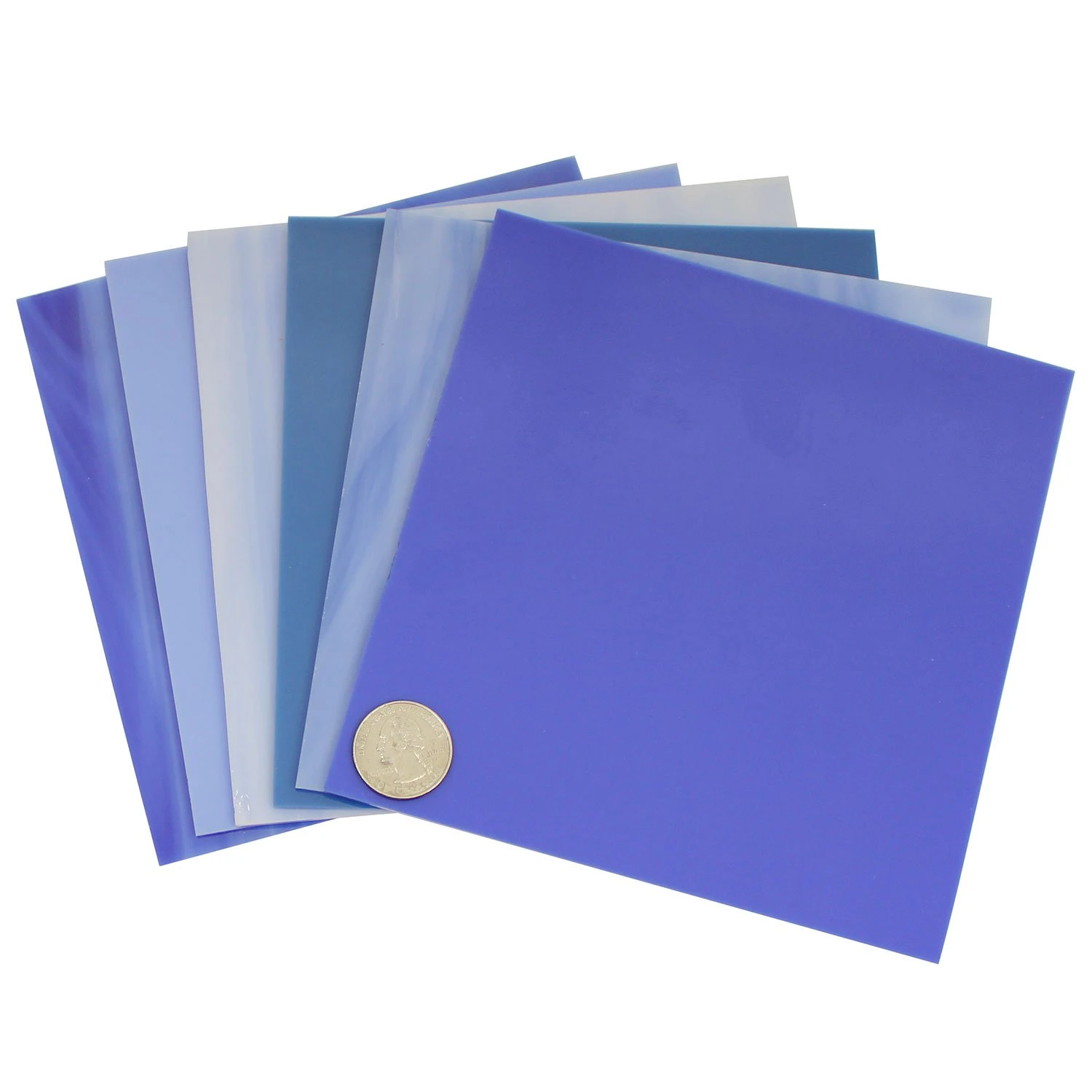 Gradient packs make it easy to add realism to your art and are a quick way to stock your studio with hues of popular colors. Perfect for water or sky, True Blue provides fantastic shades of blue, including streakies. Contains 6 pieces, 6″ x 6″ each. Good for stained glass, mosaics and fusing. 96 COE.
