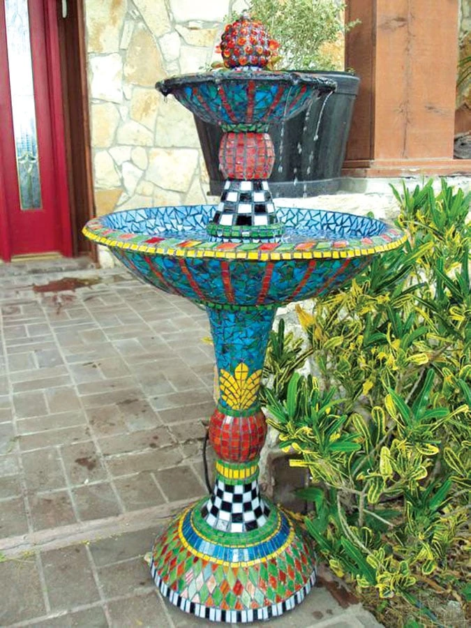 Glass on glass mosaic project shown created by artist Susan Moccia, from Delphi’s Artist Gallery. Fountain created by artist Gladis Gamez. From Delphi’s Online Artist Gallery.