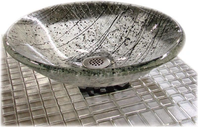 Shown in additional images are examples of projects that can be created using core drill bits. Fused pendant uses 1/8″ core drill bit for a perfect hole for stringing. Water lily table fountain by artist Teresa Batten was created with fused flower molds and assembled using a core drill bit to accommodate the fountain and water flow. Fused glass pendant lamps by artist Val Oswalt. Fused glass sink by artists Val Oswalt and Roy Kapp was created using a core drill bit to create the hole to accommodate plumbing.