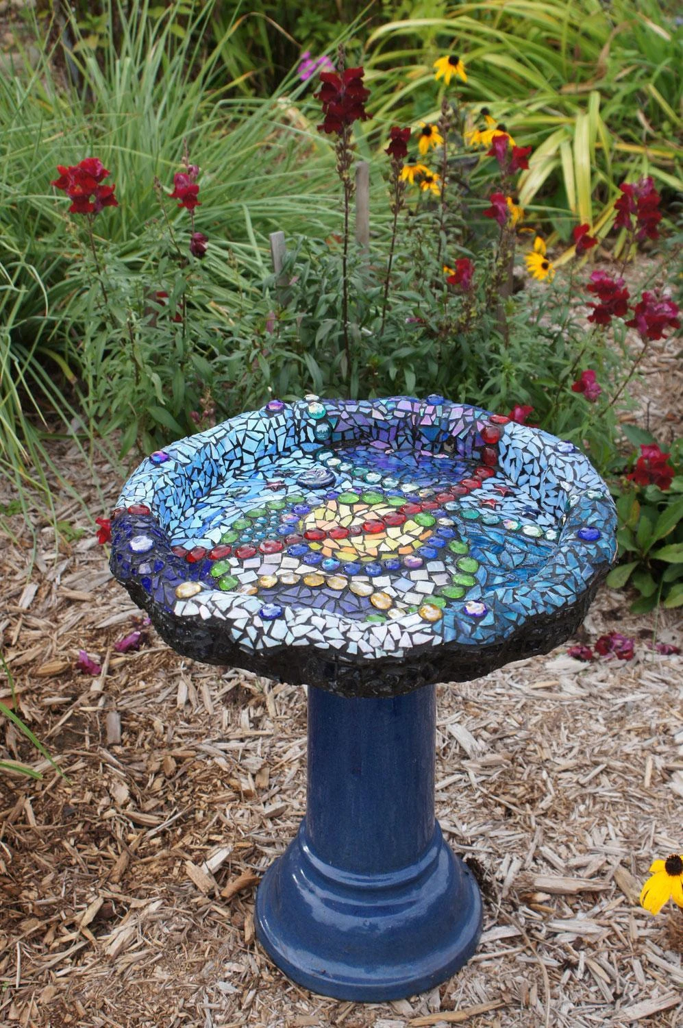 Artist Keturah Esch used Wheeled Glass Nippers to cut the background for her rose table. Artist Kim Heenan used Wheeled Glass Nippers to nip the glass in her mosaic bird bath, a beautiful focal point in her garden.