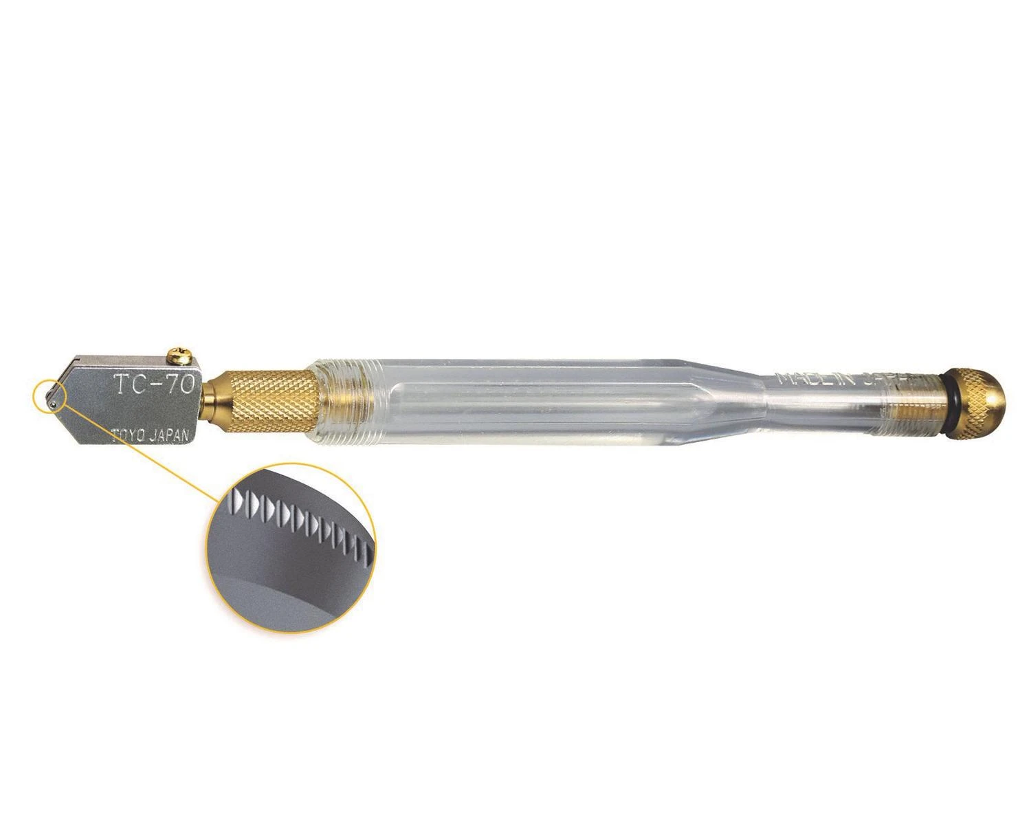 Supercutters outlast other cutters by up to 25 times! Toyo’s Supercutters live up to their name. This comfort-Grip cutter is lightweight and easy to hold. Trac wheel head features micro-notches along the edge of the wheel providing traction, reducing chances of the wheel skipping. A solid, molded handle provides proper balance and grip making it comfortable to hold and easy to use. The handle is lightly textured and comfort-contoured for a solid grip.Â
