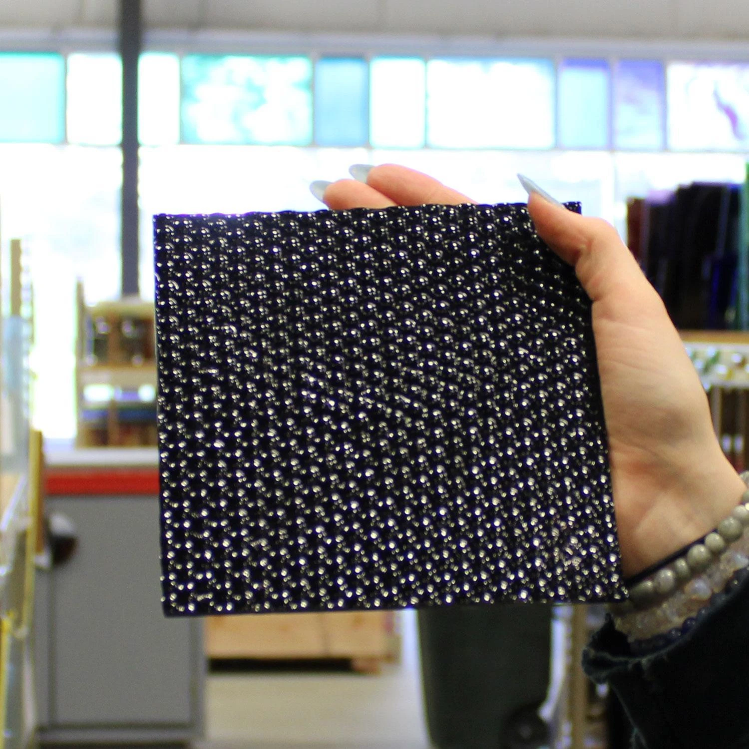 Create with a fun polka dot texture! This versatile glass will provide a stunning array of effects in your fused art, or look equally fabulous in your stained glass art. From tack fused to retain the full texture, to full fused to create tons of little air bubbles and anything in between, radium provides a dynamic array of possibilities. 96 COE.