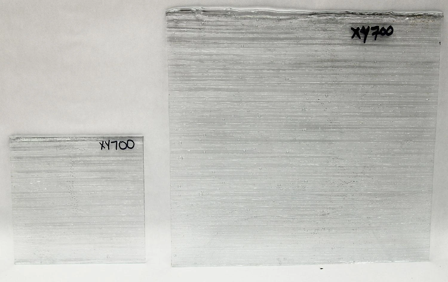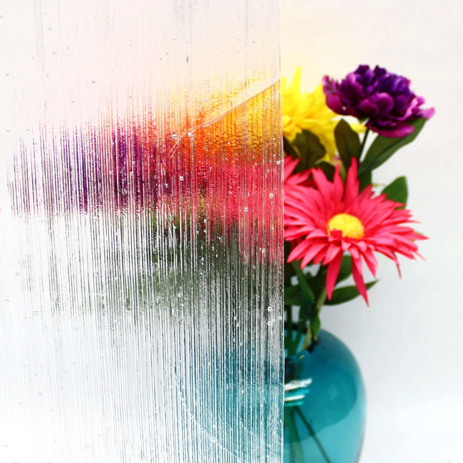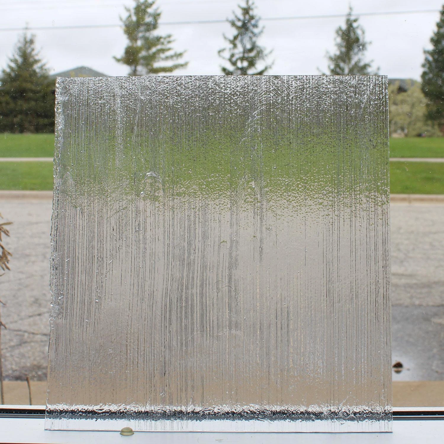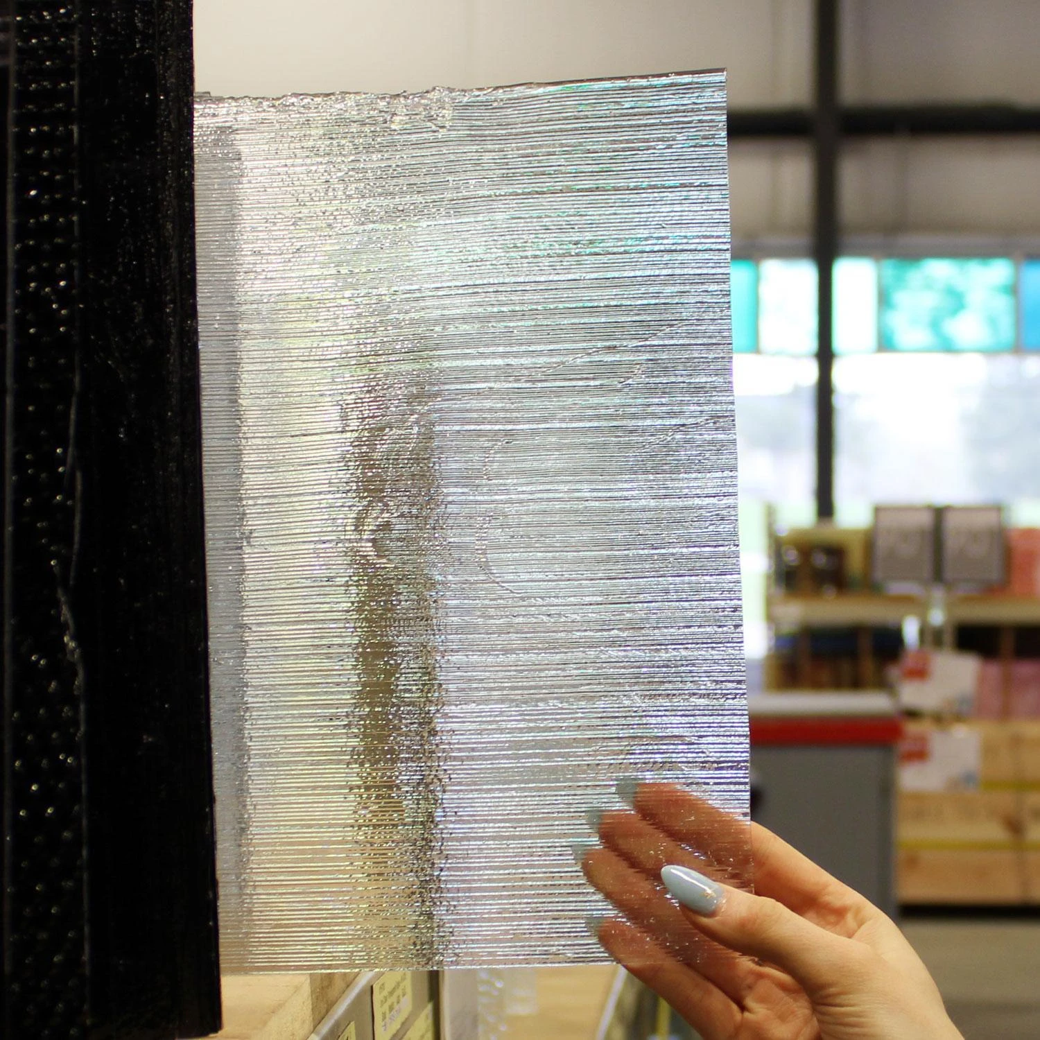 Fibroid glass offers a unique linear texture, similar to corduroy. When used in stained glass art, the lines add architectural interest. In fused art, the texture can be used to create a multitude of effects. Fill the lines with enamels, frit or glassline paints for stunning stripes, tack fuse to retain texture, or layer glass to trap tiny air bubbles adding depth. 96 COE.