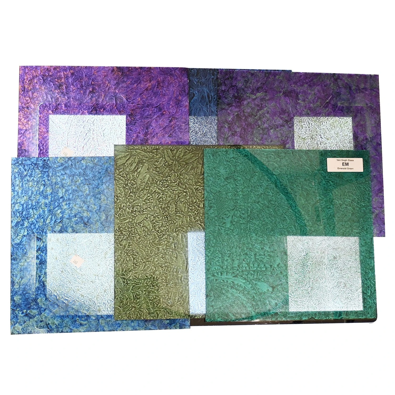 Create with this stunningly different glass! Van Gogh features a smooth front surface and a gently textured reverse side that is coated with gorgeous color and sparkle. The durable coating will not chip when cutting and provides excellent opacity for making mosaics, stained glass boxes and more. All Van Gogh glass is handmade, which means actual glass may vary slightly from photo.Â