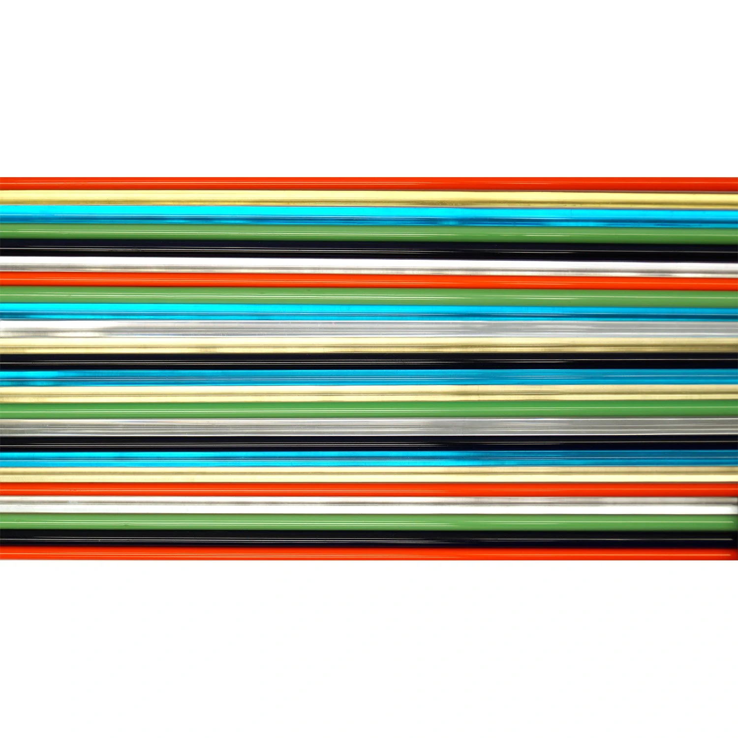 Italian rod assortments are a wonderful convenience. Make an entire necklace or bracelet with just one bundle! The coordinating colors are all easy-to-use opaque and transparent rods. Assortment includes twenty-four 13″ rods — four each of six delicious sorbet colors. 104 COE. A Delphi exclusive.