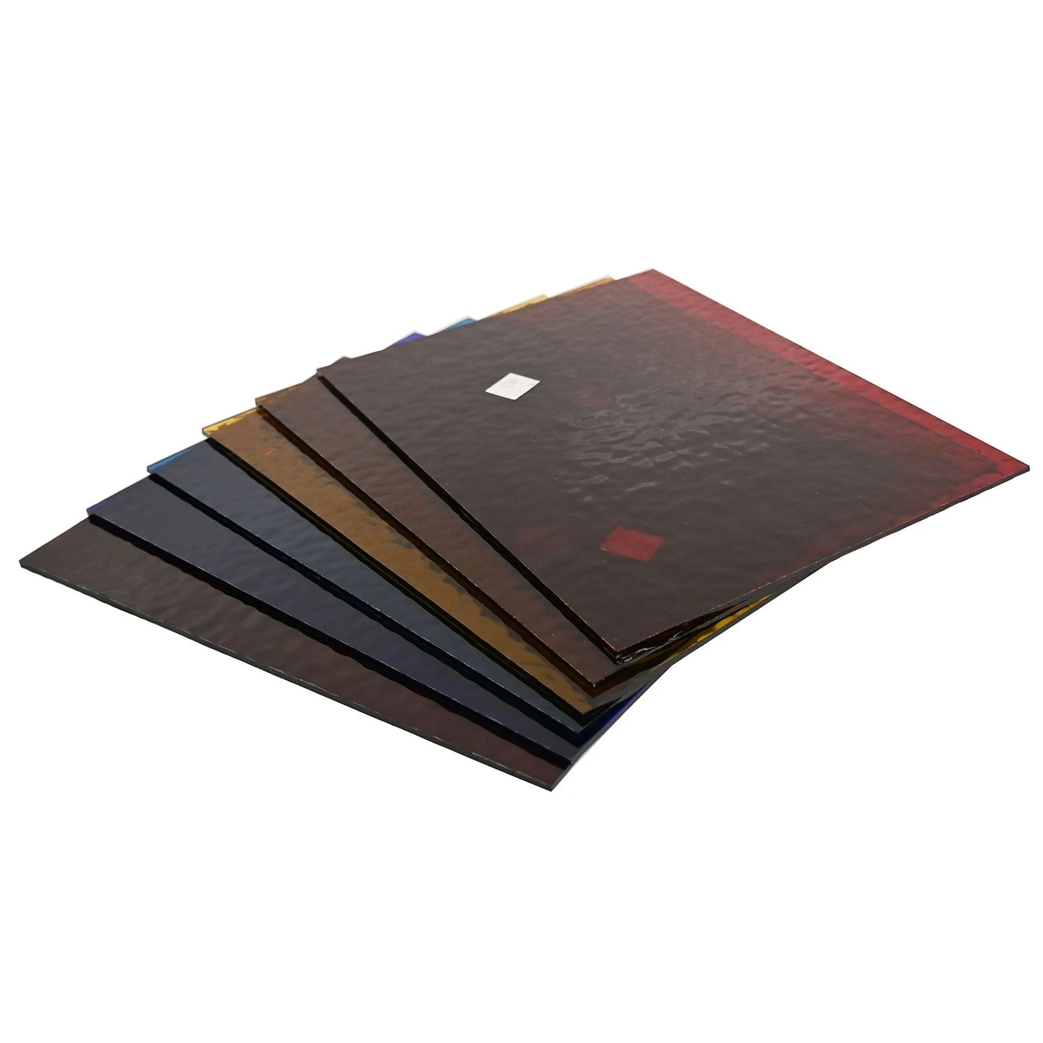 This glass is perfect for backgrounds or Victorian style windows. Its highly refractive surface is similar to a soft hammered texture. Contains 8 pieces, 8″ x 10″ in classic colors for your traditional stained glass art. Ideal for stained glass projects.