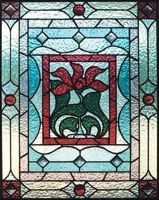“Designed Motion” stained glass panel by artist John Shiflett. “Serenity Sunrise” by artist Tom Bechtel. “Redz” by artist Tiffany Spaulding. From Delphi’s Online Artist Gallery. All others from “English Muffle Book of Designs” by Peter Foster.
