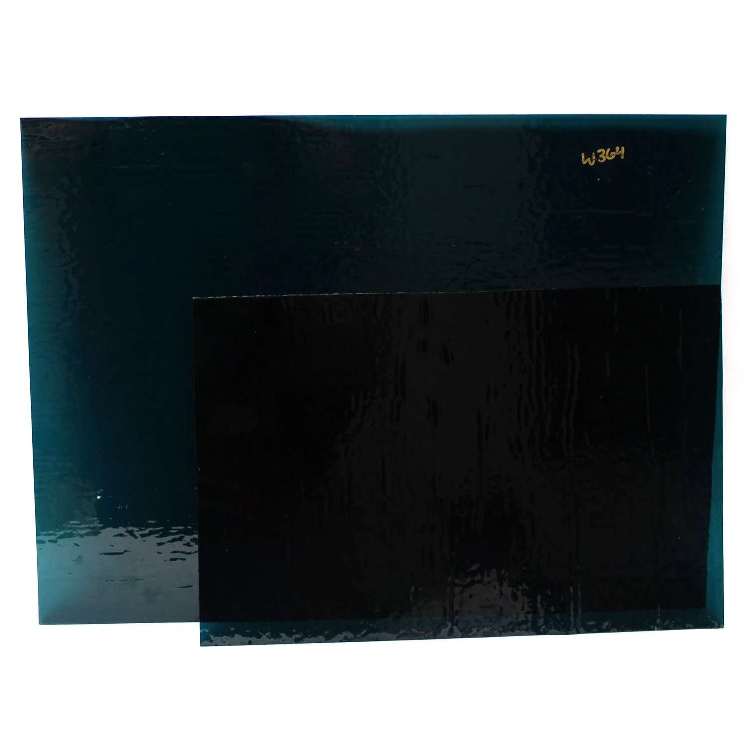 Main image shows glass front lit, second image shows glass back lit. Wissmach glass often has rounded corners as shown in additional images. Glass pieces may include factory rolled edges.