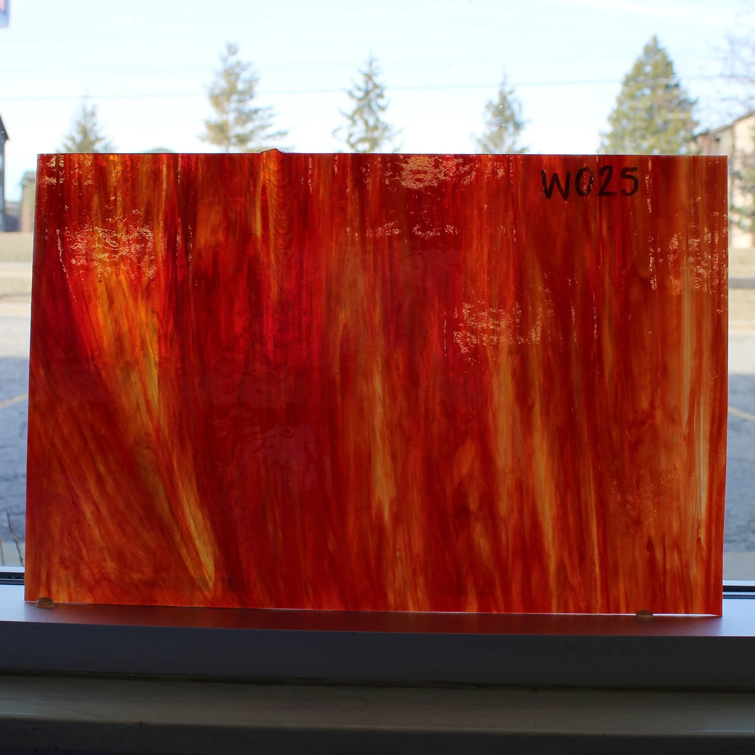 The Paul Wissmach Glass Company has been producing gorgeous, easy-cutting, machine-rolled glass since 1904, featuring rich streakies, wispies and cathedrals. Wissmach achieves the texture by rolling glass on a steel table, a practice that gives the glass a high level of obscurity without creating an overbearing texture. Streaky glass layers swirls of color on a crystal clear base for stunning visual movement.