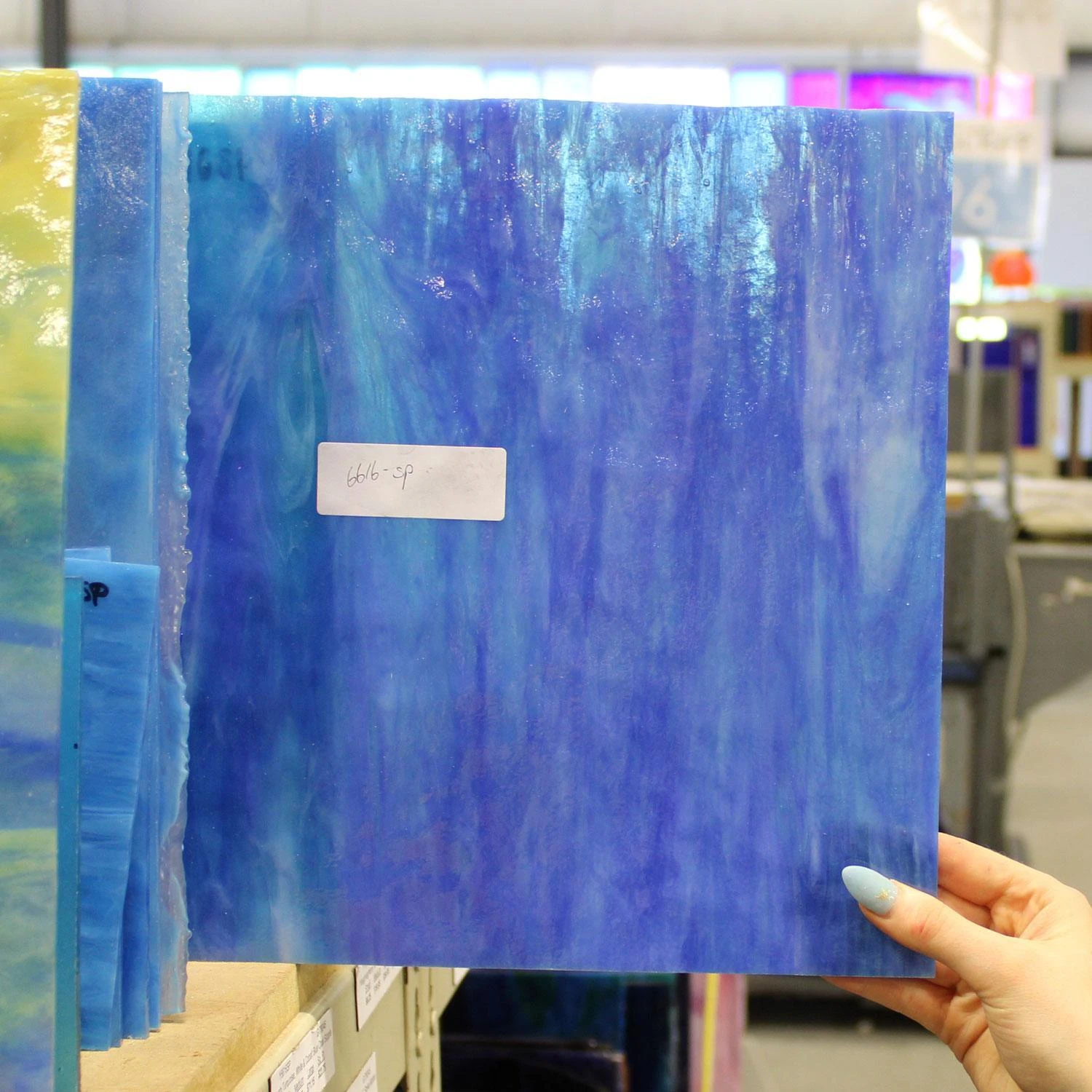 Stipple glass captures the waxy, ice-like look of the authentic Tiffany style. Colors appear to tear through the glass rather than bleed and become muddy as in many opals. Primary image shows glass back lit, while the secondary image shows the glass front lit.