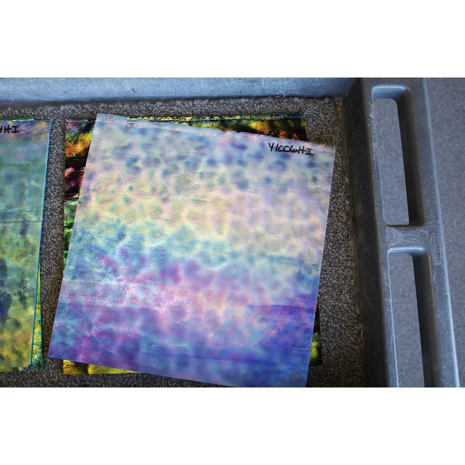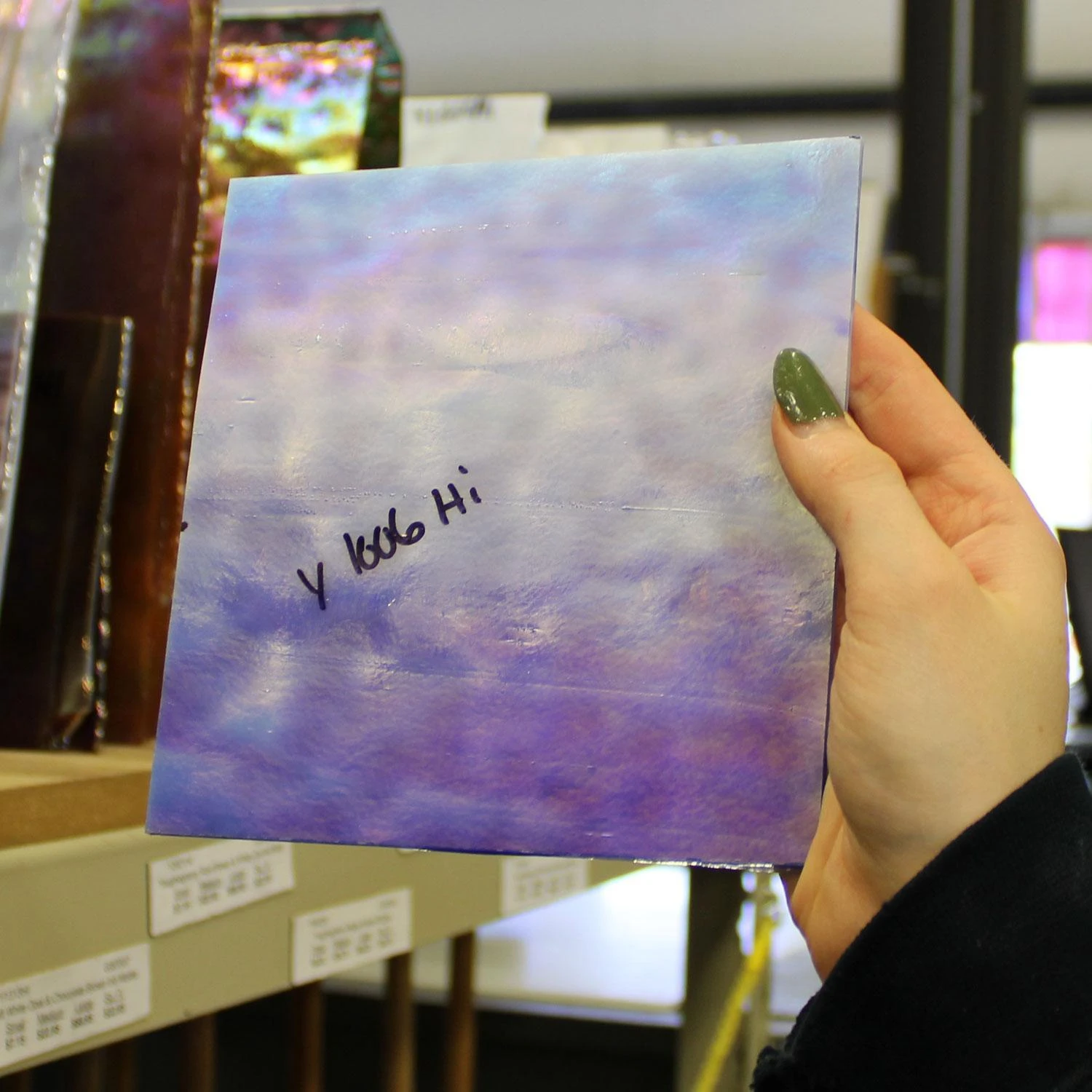 Add an extra dimension of beauty to your art. This iridized glass gives off a rainbow of colors! Great for accents or backgrounds.